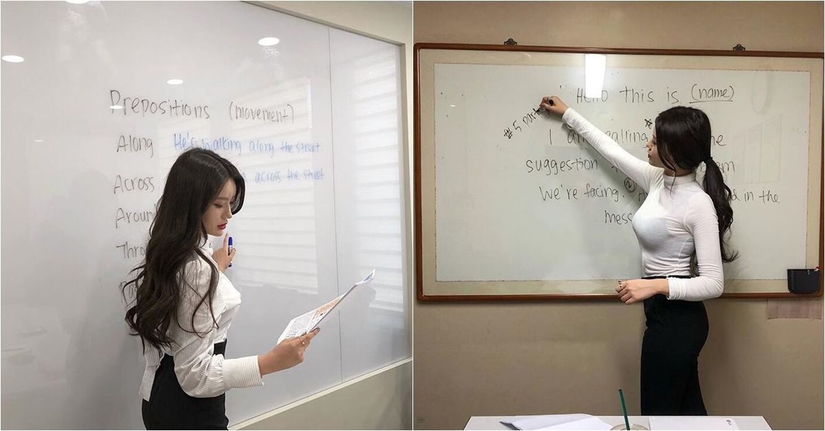 超辣英文老師「透視裝+黑窄裙」!黑色內衣直接透出來...
